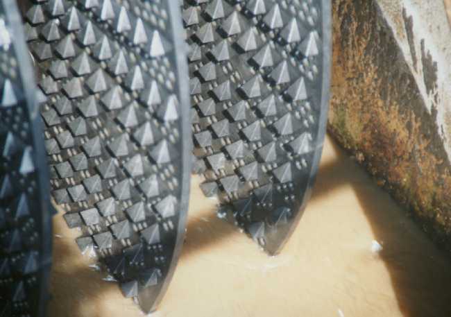 碟片材料是Evoqua(原Siemens )Water Technologies LLC.(原USFilter Envirex公司)在篩選了數(shù)百種不同原材料的基礎上確定的,經(jīng)受了幾十年各種不同工況條件下的連續(xù)運行考驗。碟片采用高強度聚苯乙烯,具有較高的強度及抗沖擊性能,耐腐蝕,壽命≥20年;聚苯乙烯碟片重量輕,比重<1.0,大大低于國內(nèi)同類產(chǎn)品的重量,明顯改善了水平軸及軸承的受力情況,降低了水平軸的撓度,提高了軸承的使用壽命。